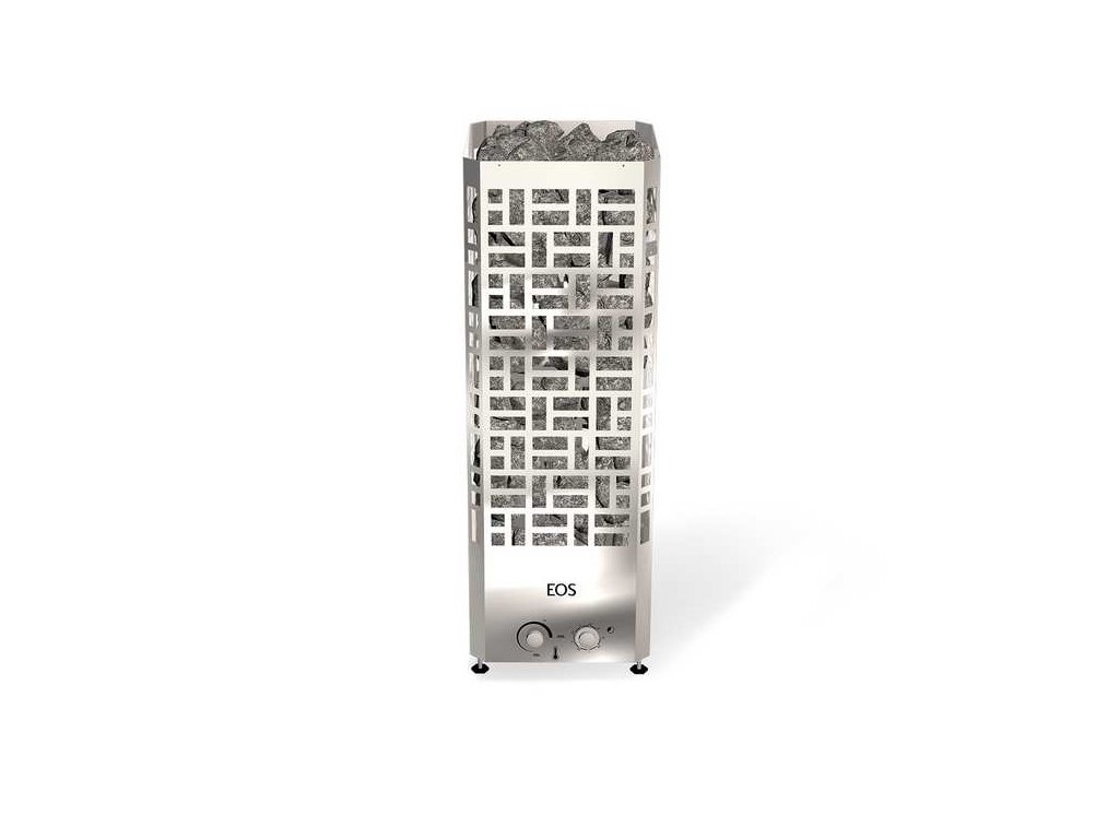 Působivý design a promyšlená konstrukce saunových kamen EOS EDGE. Vysoce kvalitní saunová kamna prvotřídní kvality ve stylovém provedení „věž“ s otevřeným kamenným košem na všech čtyřech stranách. Pro soukromé saunové systémy od cca 6 m³ do cca 14 m³. Nový saunové saunová kamna EOS EDGE je ideální pro instalaci uprostřed sauny, ale je také okouzlující před skleněnými povrchy. Nadčasově elegantní design a velmi kompaktní velikost - jen 35 x 35 cm prostorové nároky. Pouzdro z nerezové oceli. Nastavitelné nohy. Kamenný koš s objemem kamene cca 115 kg.