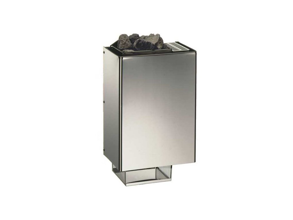 Nástěnný model pro finskou (suchou) saunu. Prostorově úsporný design. Kompaktní konstrukce pro sauny o velikosti do cca 5 m³. K dispozici s vnějším pláštěm z chromované oceli. Zásobník kamenů pojme až cca 8 kg kamenů.